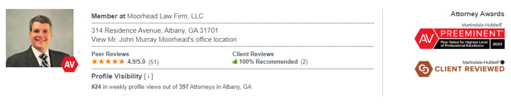 John is a member of the State Bar of Georgia and is licensed to practice in all state courts, the United States Supreme Court, the 11th Circuit Court of Appeals, and the United States District Court for the Middle District of Georgia, and is a member of his local Dougherty County Bar Association.